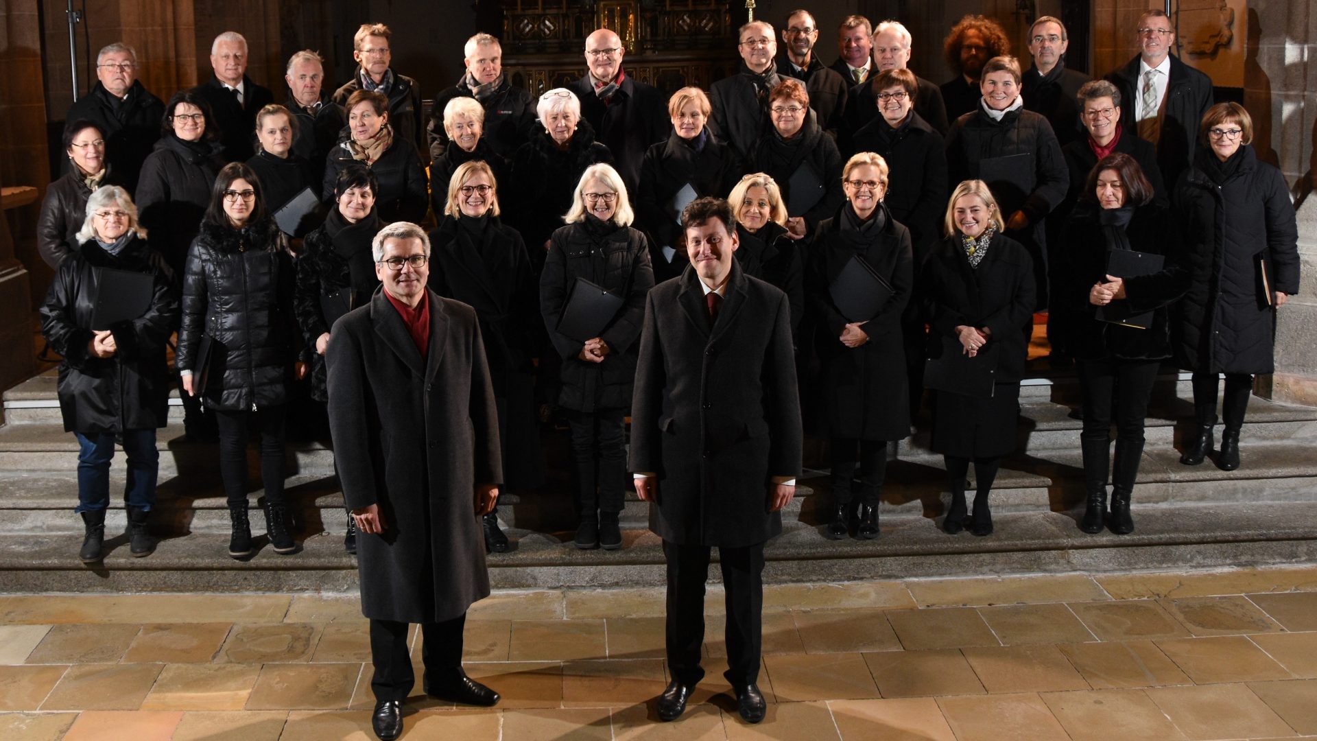Beim gemeinsamen Schlusspunkt des Konzertes, dem Abendlied „Bleib bei uns“ von Josef Gabriel Rheinberger, glänzten die Sängerinnen und Sänger beider Chöre mit Klangharmonie, Ausdrucksstärke und exakter Dynamik.